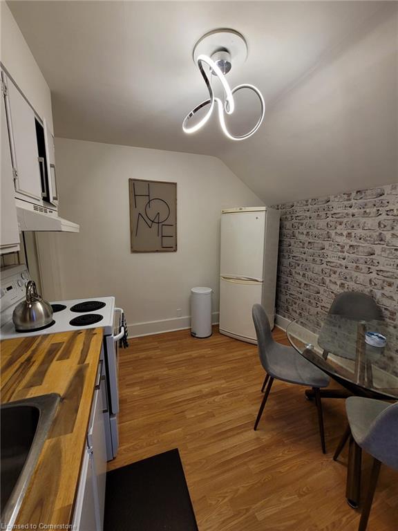 Welcome to this beautifully renovated second-floor 2-bedroom, 1-bath apartment located in a charming, well-maintained triplex in the heart of Downtown Kitchener. This spacious unit combines modern comfort with everyday functionality, offering a bright and open layout with large windows that flood the space with natural light. The recently updated kitchen features quality appliances, ample cabinetry, and sleek finishes, making it both stylish and practical for daily use. The unit is partially furnished, thoughtfully equipped with a bed frame and mattress, a comfortable couch, coffee table, and dining table with chairs everything you need to settle in comfortably without the stress of furnishing a home from scratch. Its ideal for professionals, couples, or small families seeking a convenient, move-in-ready space. Included in the rent is one dedicated parking space, providing added convenience for those with a vehicle. While there is no private laundry in the unit, shared laundry facilities are available on-site for tenant use. Located just steps from some of Kitchener’s best cafes, restaurants, shops, and the LRT, this apartment offers the perfect balance of walkability and connectivity. With easy access to Hwy 7/8 and nearby transit routes, commuting is a breeze whether you’re headed to work, school, or exploring the city. This unit is perfect for someone looking for a clean, modern, and well-located home that provides both comfort and convenience. Enjoy the benefits of a quiet residential street while still being close to everything Downtown Kitchener has to offer. Don’t miss your chance to live in this thoughtfully updated space contact us today to book your showing and make this welcoming unit your next home.