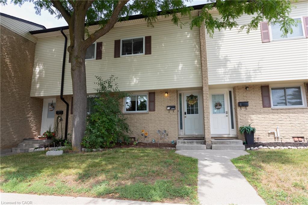 Well maintained multi-level 2 bedroom, 2 bathroom townhouse condo located in the highly sought after Chicopee Stanley Park location! Bright eat-in kitchen with brand new faucet, oak cabinets, breakfast bar, ceramic tiles, backsplash, built-in dishwasher, stove, newer stainless fridge and dinette area. Upstairs you will find a huge primary bedroom with gleaming laminate flooring, his/hers closet, full 4-piece bathroom with a convenient washer/dryer combo unit, and a good size 2nd bedroom. The lower level features a freshly painted living room with laminate, sliders to private patio, gas bbq and fully fenced yard. Ideal spot to enjoy your morning coffee, entertaining friends, or to have the family pet outside to play. French door leads to finished rec-room, 3-piece bathroom, laundry, and huge storage space. Central air, window coverings, refinished oak railings, pine stairs, upgraded electrical 100 amp panel, roofing shingles and TWO (2) parking spots, one owned and one rented monthly. This complex was totally renovated in 2005! It has a lovely playground for the kids, steps away from green space, hiking, biking, trails, skiing, schools, shopping and highway 401.