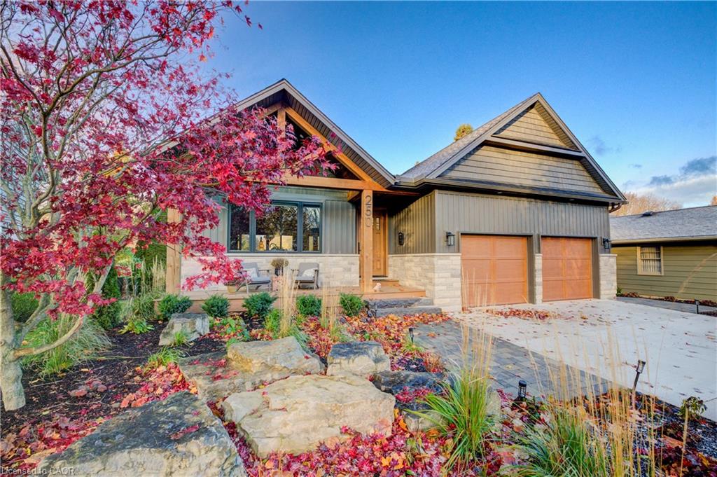 Welcome to 250 Stanley Drive, a truly exceptional Westmount residence backing directly onto the prestigious Westmount Golf & Country Club. Enjoy unobstructed rear yard views of holes 1 and 2, offering a rare blend of privacy, open space, and year-round natural beauty.Step through the custom solid oak front door into open-concept principal rooms defined by striking post and beam construction and soaring ceilings. The space is filled with natural light and anchored by a beautiful stone fireplace.The gourmet kitchen is a showpiece, seamlessly integrated into the main living space. Featuring extra-height cabinetry, quartz counters, walnut accents and open shelving, a coffee bar, premium appliances including a 6-burner dual fuel range, wall oven and microwave, and a 12+ ft walnut island with seating and dual-sided storage.Expansive windows and sliding doors lead to a covered upper deck with timber detailing and glass railings, creating an incredible outdoor living space with panoramic golf course views. The primary suite offers deck access, a spa-inspired ensuite with heated floors, double sinks, and a temperature-balanced shower, plus a walk-in closet with custom built-ins.The walkout lower level features a bright recreation area with custom TV wall, wet bar, and access to the patio and hot tub. This level also includes a home gym, additional bedroom, 4-piece bathroom, and private office.Additional features include 4-zone climate control, fully integrated hardwired audio with in-ceiling speakers and Sonos, custom wine cellar, electric blinds, oak hardwood flooring, quartz counters, heated basement bathroom floors, and a garage with extra height for a potential lift.Professionally landscaped with a heated driveway, heated eavestroughs, underground drainage, gas fire pit, upper and lower deck speakers, and natural gas BBQ line.A rare opportunity to own a thoughtfully designed home with one of the most coveted views in Waterloo.