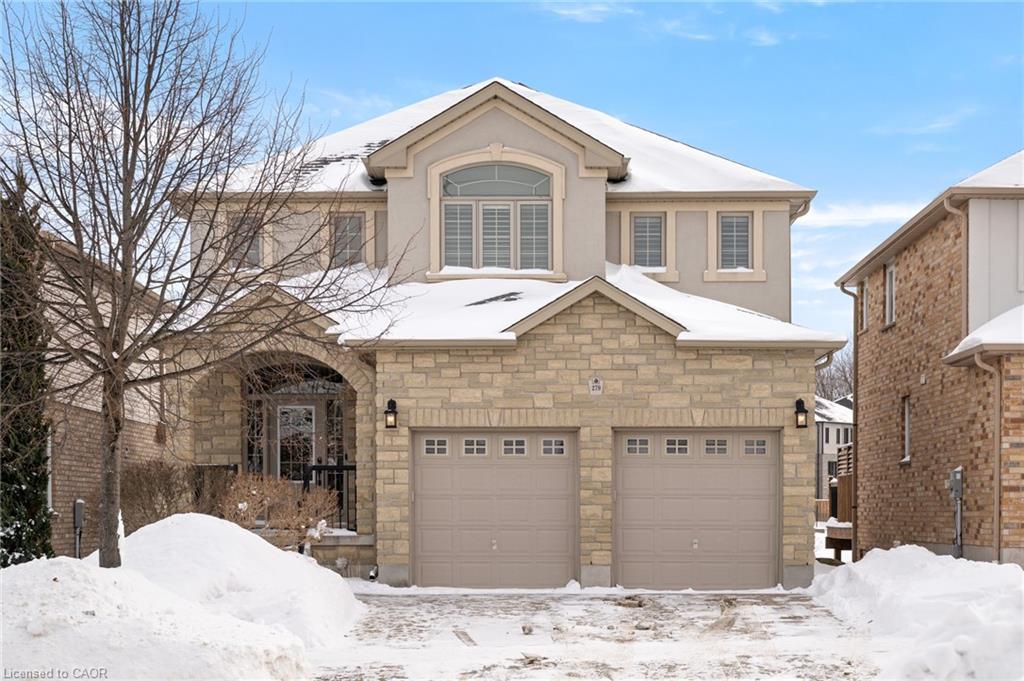 Welcome to 279 Zeller Drive, a custom-built Savic Homes offering 3 large bedrooms, 4 bathrooms, and a fully finished walk-out basement, ideally located in the highly sought-after Lackner Woods neighbourhood. Backing directly onto protected greenspace, Zeller Park,scenic trails, and just a 4-minute walk to one of the Region of Waterloo’s top-rated elementary schools & more. The striking exterior showcases stone and stucco detailing, a welcoming front porch, beautiful landscaping, and a concrete driveway. inside, the bright open-to-above foyer impresses with hardwood stairs, ceramic flooring, a convenient mudroom with closet, and a 2-piece powder room.The main floor features a thoughtfully designed open-concept layout, highlighted by a chef-inspired kitchen with granite countertops, a large island, stainless steel appliances, and a sun-filled dinette with patio doors leading to a spacious deck—perfect for entertaining while enjoying views of the park and greenspace. The inviting living room is finished with maple hardwood flooring and a natural gas fireplace. The second floor offers three generous bedrooms, including a spacious primary suite with a walk-in closet and a luxurious ensuite featuring double sinks, a glass-enclosed shower, and a jetted corner soaker tub. A full laundry room with newer LG appliances, counter space, sink, cabinetry, and ample storage completes this level (originally designed as a fourth bedroom).The fully finished, carpet-free walk-out basement provides a large open recreation area, a 2-piece bathroom, ample storage, and oversized windows. Sliding doors lead to a covered patio and a beautifully landscaped, fully fenced yard backing directly onto Zeller Park and the Lackner Woods trail system. Additional highlights include a double car garage with interior access to the mudroom (originally designed as a laundry room) and countless upgrades throughout. With nothing left to be desired, this exceptional home is truly a must-see.