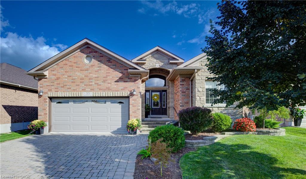 Welcome to 33 Orchard Way, a beautifully updated Energy Star bungalow in the sought-after community of Stonecroft. This bright, open-concept home features cathedral ceilings, hardwood floors, and California shutters. The modern white kitchen includes 360-degree island access, stone countertops, stainless steel appliances, a gas stove, and under-cabinet lighting. The spacious primary suite at the rear offers his-and-hers closets and a 4-piece ensuite, while the front of the home features a guest bedroom and main bath. The finished lower level adds a third bedroom, 3-piece bath, recreation and games rooms, and a cozy electric fireplace. Outside, relax on the large deck with gas BBQ hookup, included gazebo, and direct access to the trail network. Additional highlights include main floor laundry, double car garage, interlock driveway, a new roof (2023), new furnace (2024), and no rentals. Stonecroft’s 18,000 sq. ft. rec center offers an indoor pool, fitness room, games/media rooms, library, party room, billiards, tennis courts, and 5 km of walking trails. Come live the lifestyle at Stonecroft!