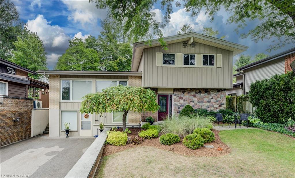 Highly sought-after Manchester Road! Here’s your opportunity to own a home in this desirable neighbourhood. The first thing you’ll notice is the large resurfaced driveway (2018), offering plenty of parking. The single-car garage has been converted into additional living space—perfect for storage, a home office, or hobby room—but can easily be returned to a garage if desired. This charming 3-bedroom, 1.5-bath side-split looks onto greenspace with a playground nearby. Bright windows fill the home with natural light, while the renovated kitchen is a true highlight, featuring large window overlooking the tiered, private backyard. Enjoy entertaining outdoors with the updated composite deck, complete with pergola and privacy. Upstairs, you’ll find three generous bedrooms and a beautifully updated main bath (2021). The cozy family room is anchored by a fieldstone fireplace, now converted to gas for comfort and convenience. The lower level offers a workshop area and a well-placed laundry room. All this in a fantastic location close to shopping, schools, the expressway, and so much more.