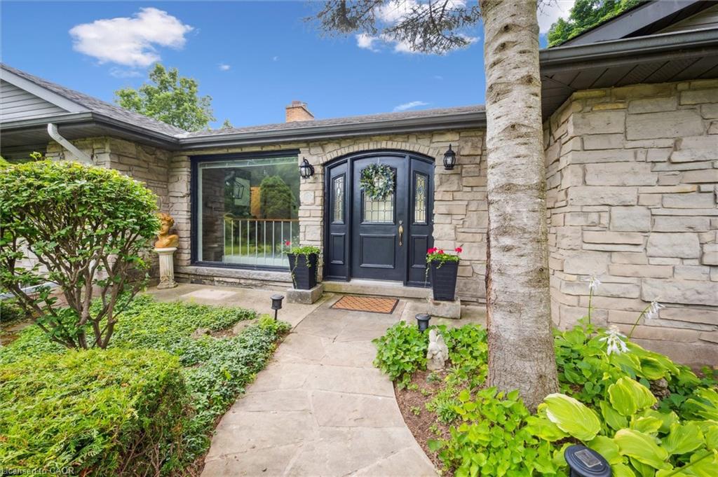 Where Muskoka Meets the City! Step into serenity with this breathtaking property, perfectly situated on over an acre of lush, mature trees right in the heart of Kitchener. If you’re searching for a commuter’s dream just minutes from the 401, your search ends here! As you enter, be prepared to be wowed by the luxurious Italian marble flooring that sets the tone for elegance. The open-concept great room is designed for both comfort and style, featuring plush, newly carpeted spaces and a cozy wood-burning fireplace that invites warmth & relaxation. The sunroom, with its expansive windows, offers mesmerizing views of the Grand River & Doon Valley Golf Course. Prepare to be inspired in the gourmet kitchen, boasting custom lacquer cabinets, a stunning custom copper hood, and rich cherrywood floors that enhance the ambiance. With a maple countertop, roll-out pantries, and high-end appliances included, this space is designed for culinary creativity. Four elegant French doors lead you to a flagstone patio, perfect for summer entertaining and outdoor dining.This spacious bungalow features three freshly carpeted bedrooms on the main floor. The primary retreat boasts a serene Jack & Jill bathroom & private sliding glass doors that open onto a secluded deck, offering peaceful views of your expansive backyard oasis. The lower level adds incredible value with an additional bedroom & four-piece bathroom. Enjoy cozy gatherings in the spacious rec room complete with a second wood fireplace. With tongue & groove pine accents, luxury vinyl flooring & a dedicated laundry & tool room, this space is both functional & stylish. Don’t forget the luxury personal-trainer sized gym with custom epoxy floor & egress window! Step outside to discover your own personal sanctuary! A charming shed with electricity & loft above the garage hold endless potential. Hiking trails, canoeing, ponds, all accessible from your backyard. Wander through your mature perennial gardens & let nature inspire you!